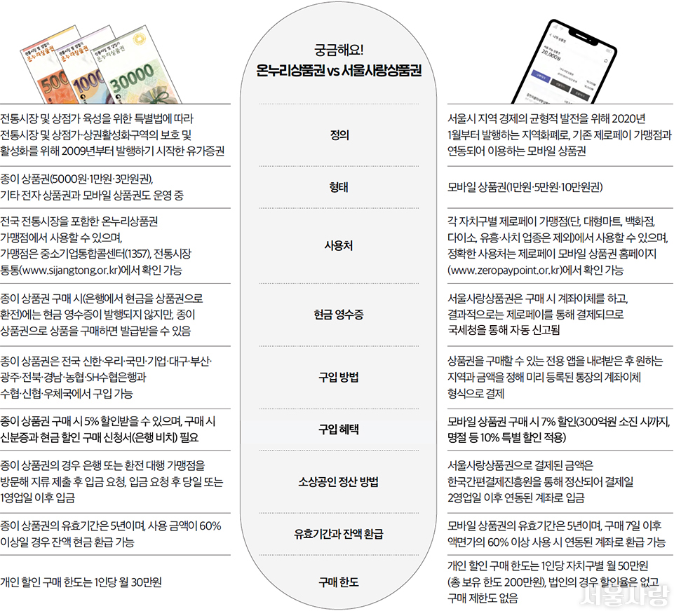 온누리상품권VS서울사랑상품권