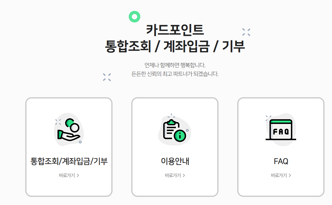 - 메인 화면에서 ‘카드 포인트 통합조회&계좌입금’ 클릭