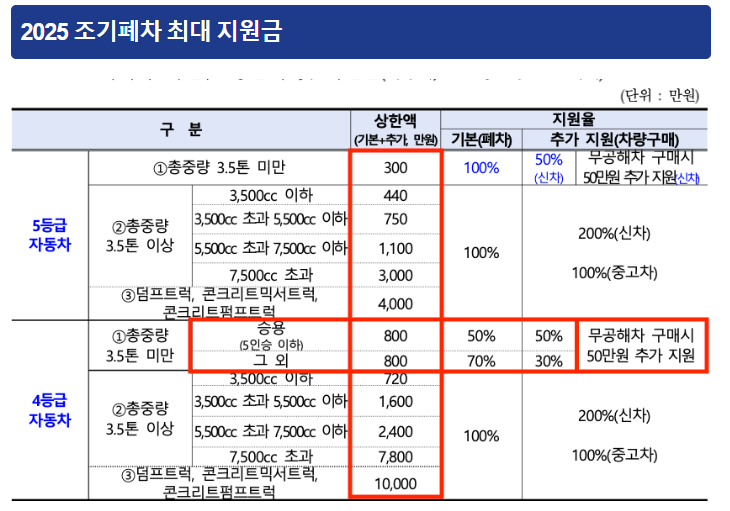 🔹 2025년 노후경유차 조기폐차 지원 최대지원금