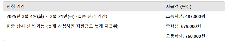 2025년 교육급여 신청 기간 및 지급액